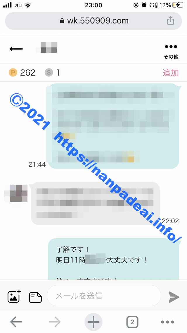 ワクワクメールのやり取りでも日付が出てましたよね。同日であることがわかると思います。