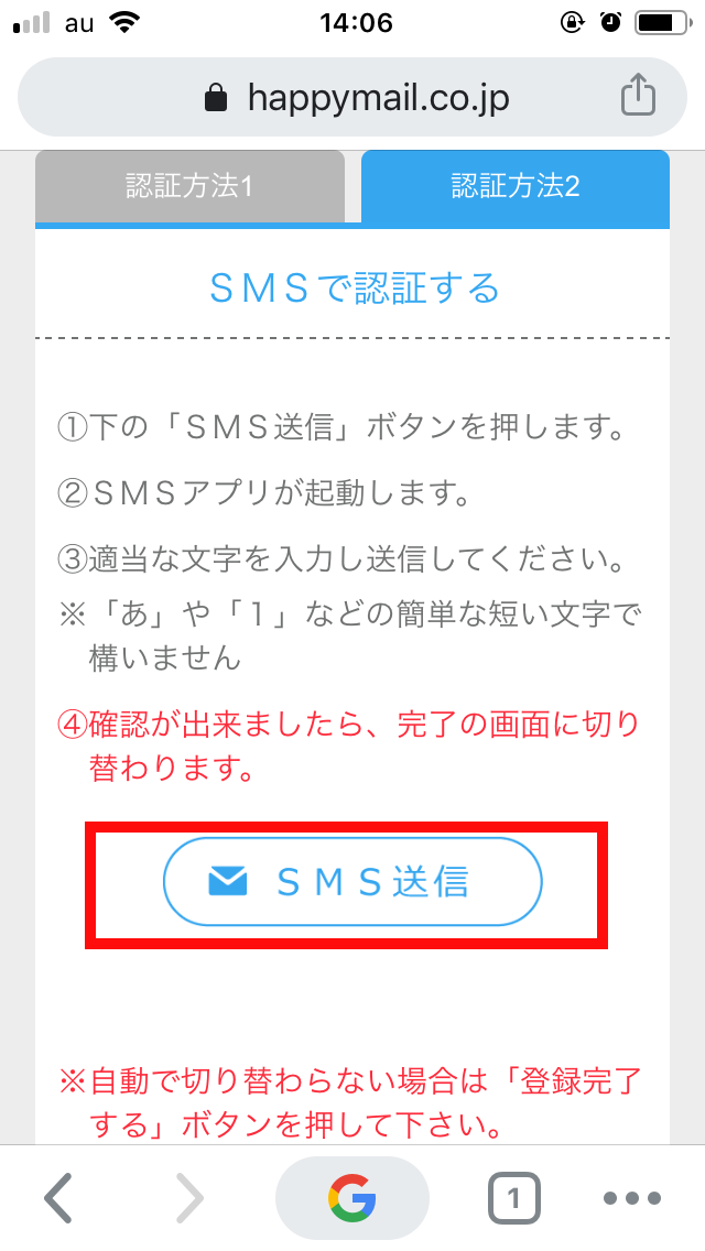 そうしたら、サイトに戻り、「登録完了」をタップしてください。