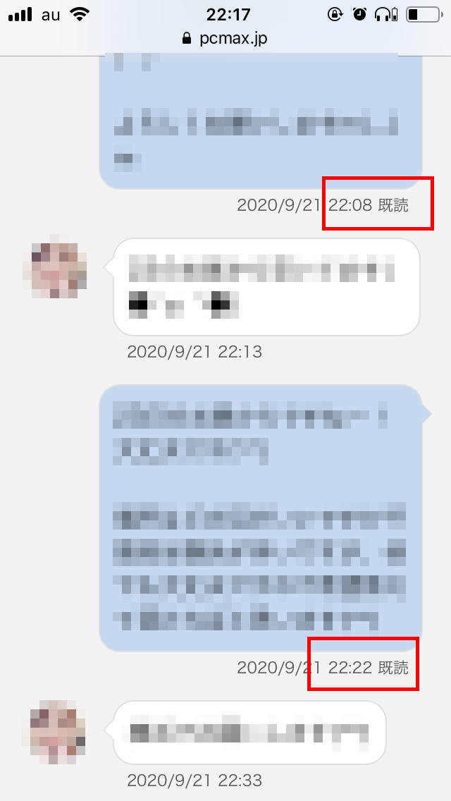 PCMAXには、LINEと同じく既読機能があります。