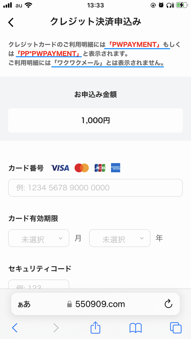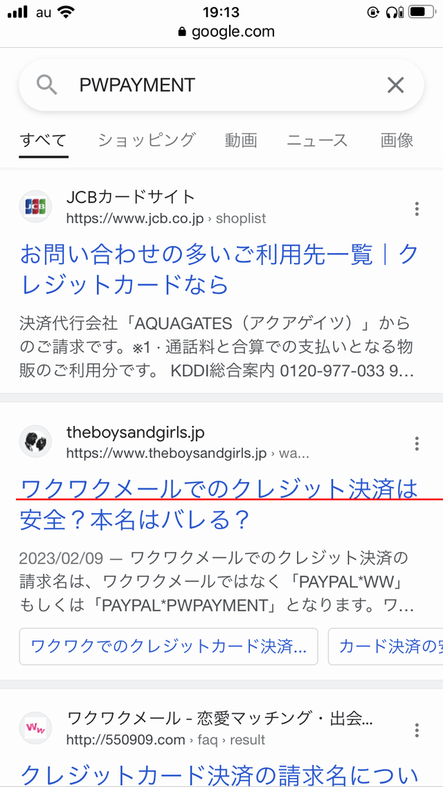 ・ワクワクメール(登録無料、18禁)でクレジットカードで課金しても、明細には、「ワクワクメール」と載ることはない。「PWPAYMENT」や「PP*PWPAYMENT」などと書かれる