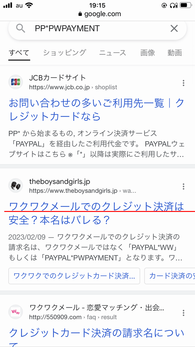・「PWPAYMENT」「PP*PWPAYMENT」の明細で、ネット検索から、ワクワクメールの課金にたどり着く可能性はある。課金がバレるリスクを0にしたい場合は、コンビニや、ビットキャッシュなどの電子マネーで決済がおすすめ