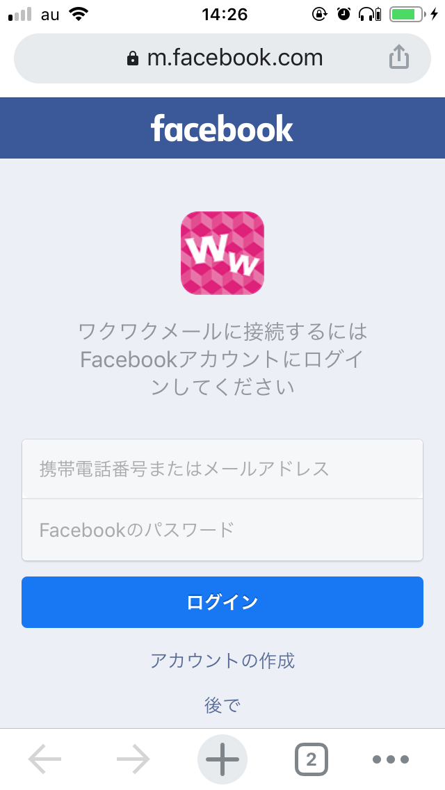 ・ワクワクメールは、facebook登録、ログインはできない。