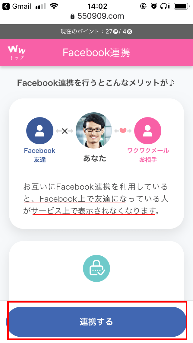 ワクワクメール内でも、Facebookで取得した情報は一切公開されません。