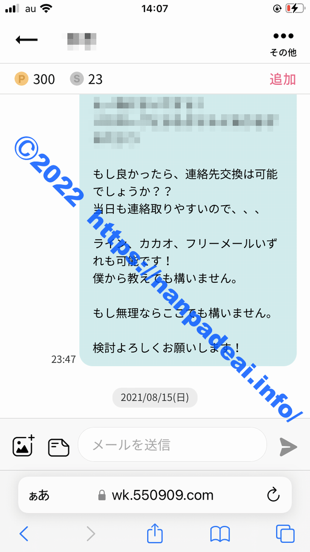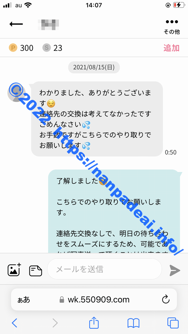 ・連絡先交換できなくても会える。ポイントにゆとりを持つこと大事