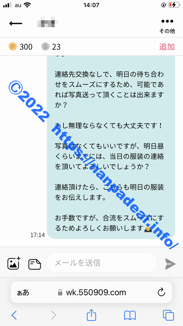 - 写真ダメなら、当日に女の方から服装の連絡をすることを要求